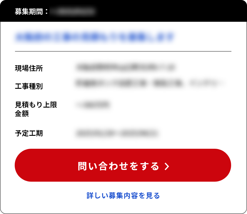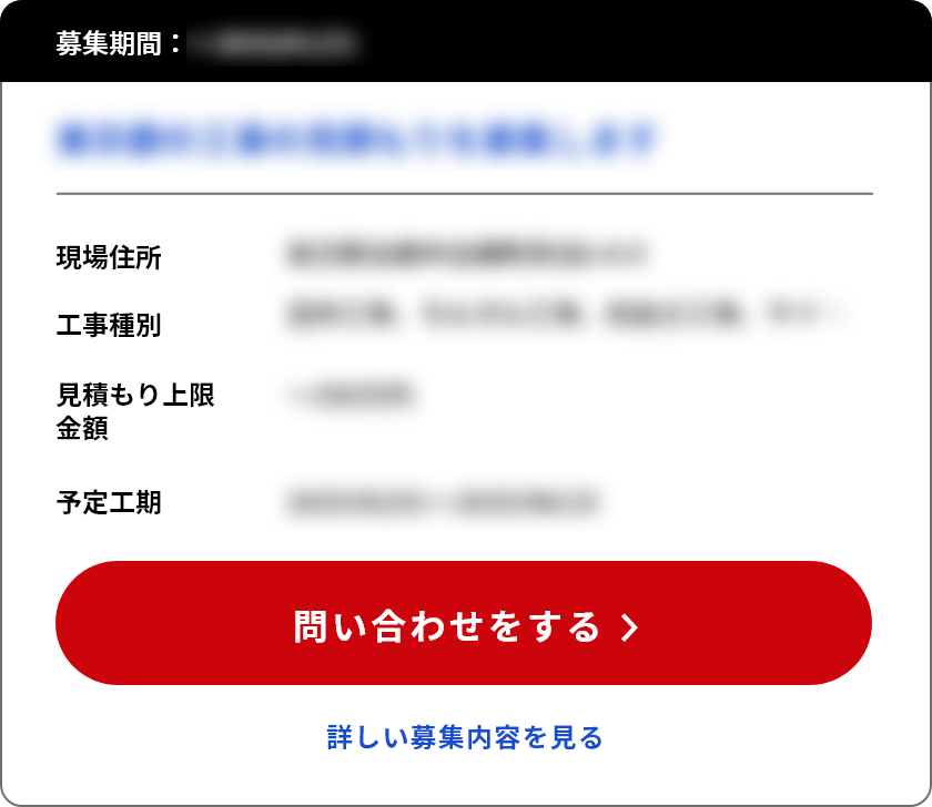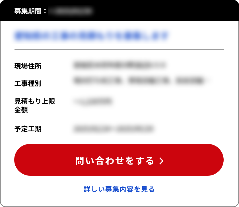 規模の大小に関わらず、工事案件ごとに利用可能で、見積もり提出することが出来ます