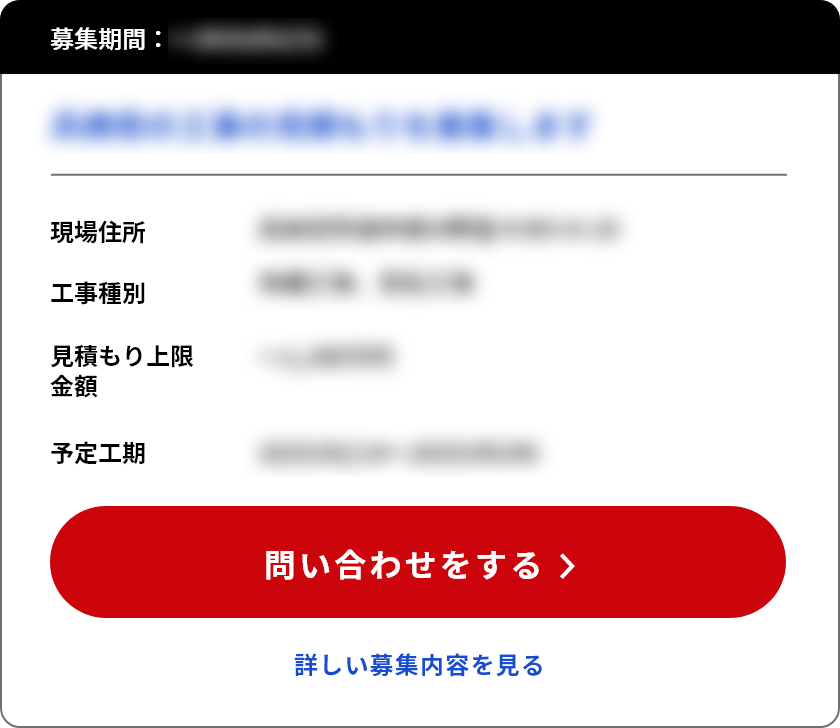 - 工事情報を登録で待つだけ!施行会社から直接見積もりが届きます!